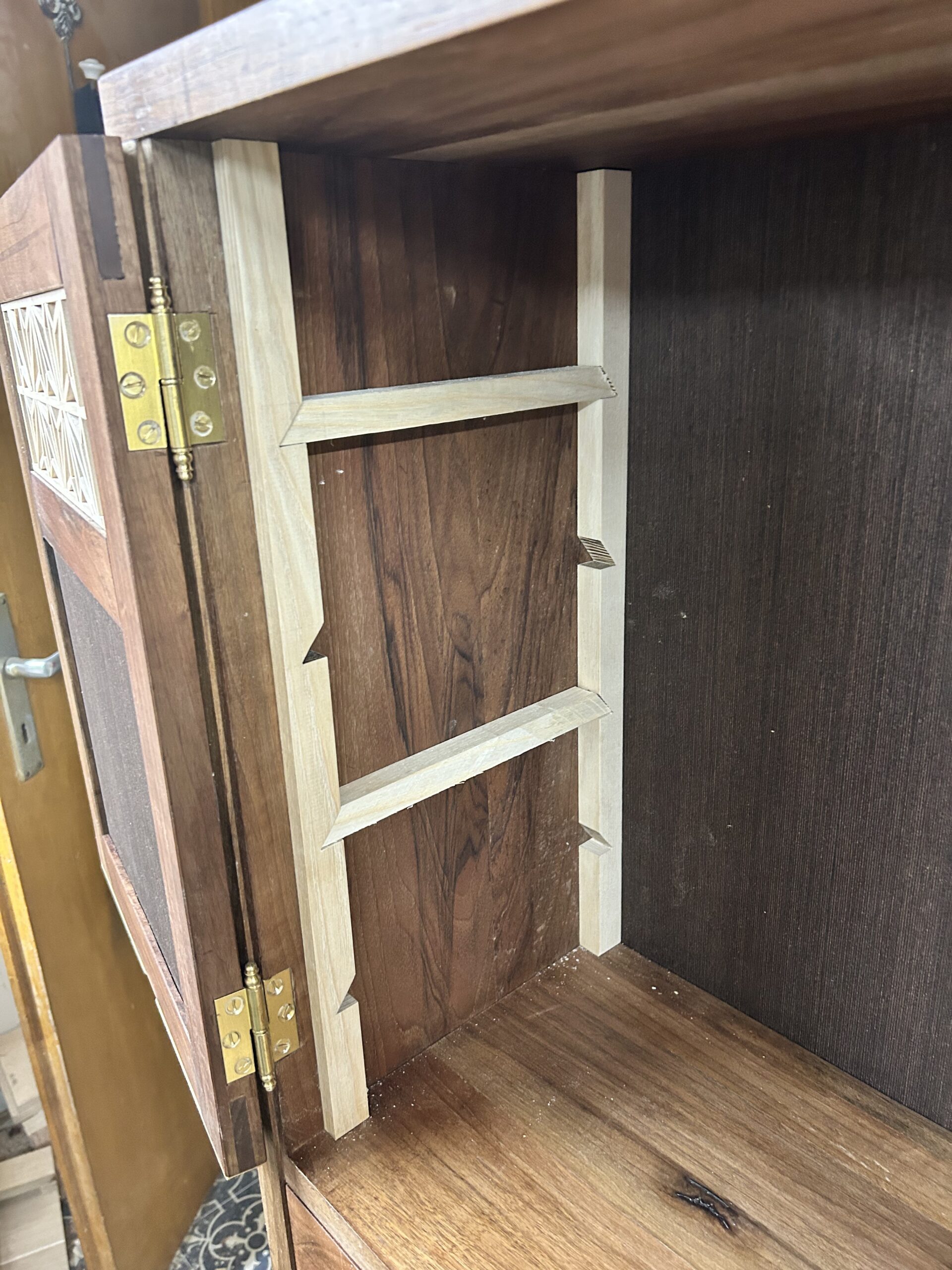 To keep the interior flexible, I used adjustable shelves with pegs, so the height and number of shelves can be easily changed. Who knows—maybe this cabinet will find its place in our household someday!