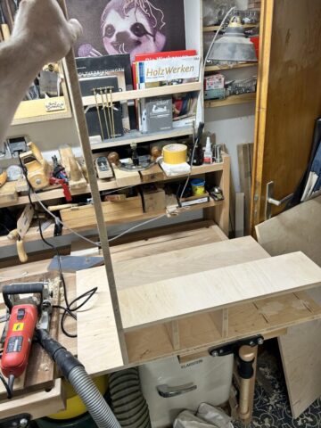 Um im Innenraum flexibel zu bleiben habe ich auf Zahnleisten zurück gegriffen. So kann die Höhe und Anzahl der Regalböden flexibel eingestellt werden. Wer weiß vielleicht landet das Schränkchen mit der Zeit ja doch in unserem Haushalt…